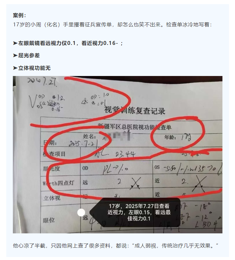 17岁还能治弱视?一个月视力从0.1到0.4,他的参军梦有救了!