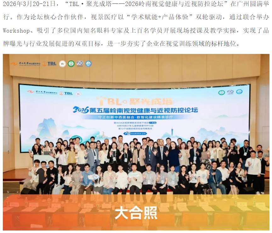 视景医疗精彩亮相2026岭南视觉健康与近视防控论坛,彰显视觉训练标杆实力